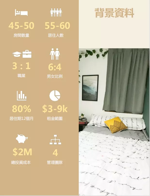 2. 住客的信譽 – 我們會要求留學生,青年專業人士需要在訂房時提供證明,以證明他們有能力支付租金。同時我們的院校伙伴及企業客戶也會通過我們直接訂房。根據以往的經驗,我們的欠租比率低於3%。